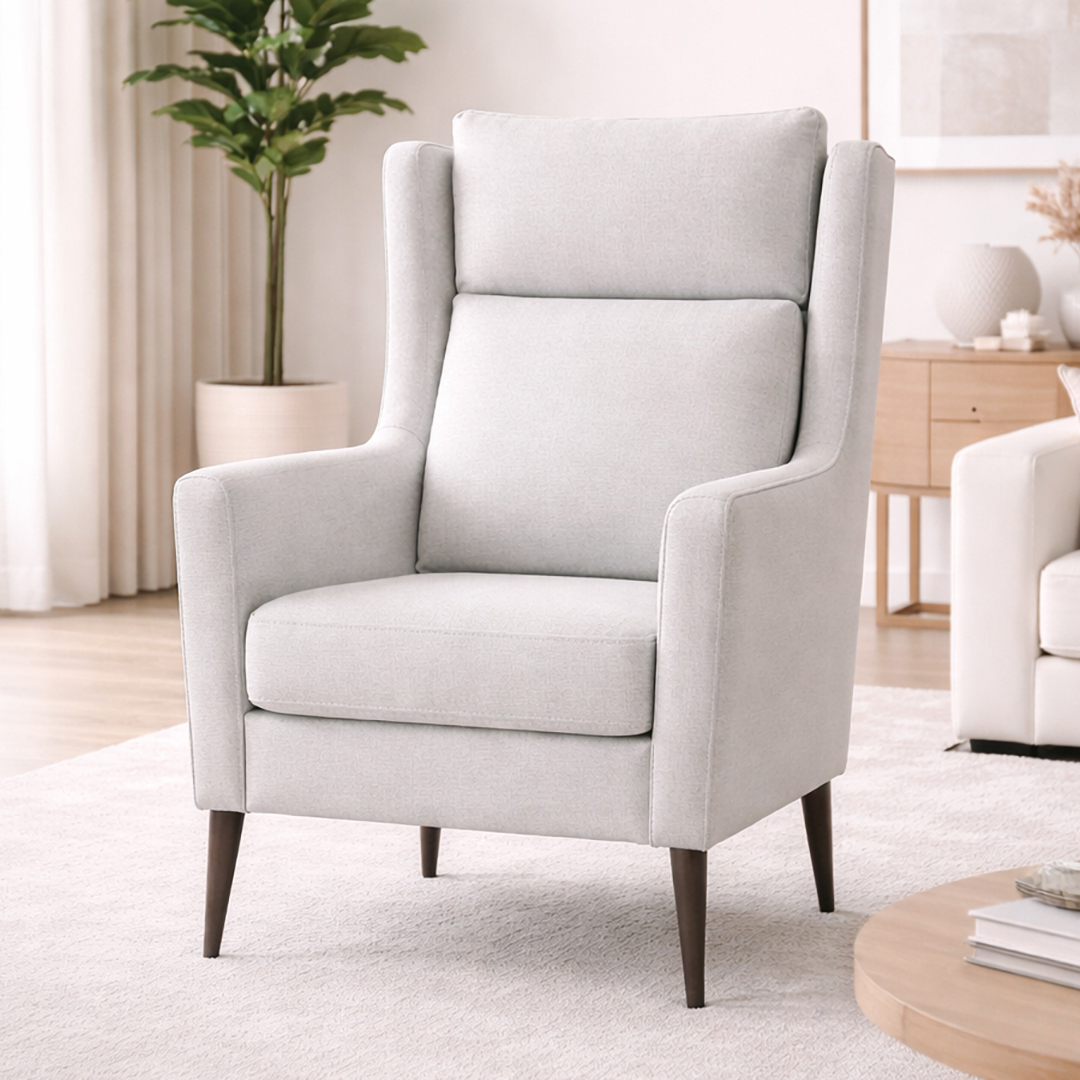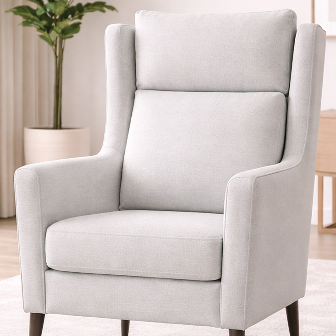 Esta butaca destaca por su elegancia serena y su diseño contemporáneo, pensada para integrarse con naturalidad en espacios luminosos y sofisticados. Sus líneas limpias y estilizadas, junto con los brazos ligeramente inclinados, crean una silueta ligera que aporta equilibrio visual sin renunciar al confort.